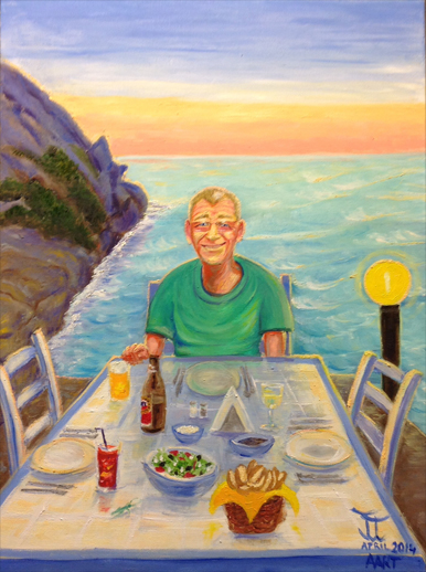 | Titel: Portret Aart Rovers Datum: Maart 2014 Techniek: Olieverf op canvas Afmetingen: 50x60 cm